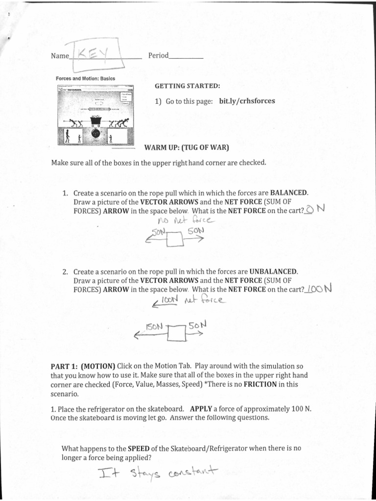 Create an applied force and see how it makes objects use this html to embed a running copy of this simulation forces and motion simulation lab answer key. Basics is an educational simulation in html5, by phet interactive simulations at the university of colorado.